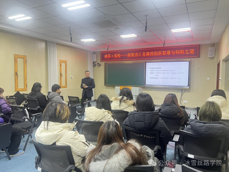 本次讲座融合了理论梳理、案例解读与实战指导,体现了冰雪丝路学院服装与服饰设计专业对接行业前沿、注重创新思维培育的教学导向。讲座不仅提供了清晰的竞赛策略指引,更激发了学生对设计本质与未来方向的深入思考,为专业人才培养注入了突破界限、重构创新的动能。