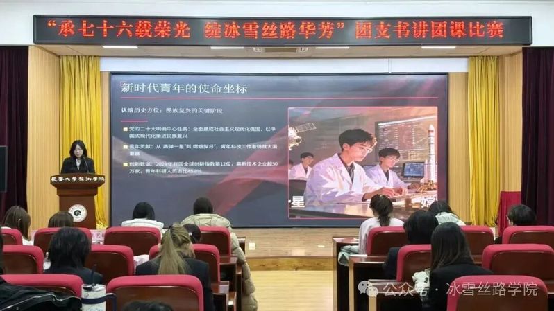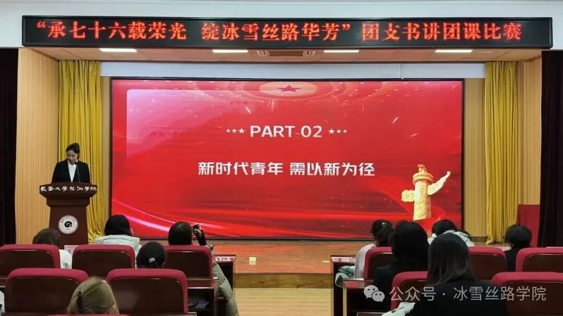 青春与信仰同向,理想与担当同行!12月3日,冰雪丝路学院在筑梦报告厅举办“承七十六载荣光,绽冰雪丝路华芳”第一届团支书讲团课大赛。2025级辅导员刘磊以及各中心主任、主席团成员受邀担任评委以及数十名学生代表共同出席本次青春盛会,为参赛团支书加油鼓劲。
