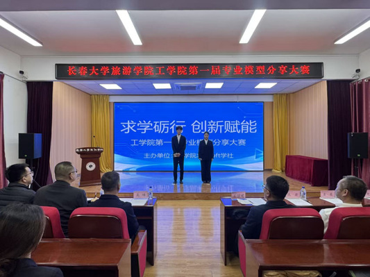 近日,由工学院主办,智慧建设现代产业学院、求实Loft学社承办的2025年长春大学旅游学院工学院第一届专业模型分享大赛在教学楼筑梦报告厅举行。吉林省求实建设软件有限公司校企事业部总经理王佳建,工学院院长高峰、党总支书记仇岩、副院长董峻岩、院长助理郑浩东、团委书记奚亮、工程管理专业带头人赵慕楠、工程造价教研室主任杨晓辉参加会议并担任比赛评委。