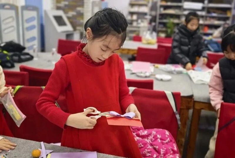 手工制作课上,彩纸、剪刀和稚嫩的笔迹,汇成了最独特的祝福。孩子们埋头细细剪贴,将心中对家人的爱,一点点装进亲手制作的贺卡里。