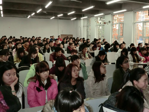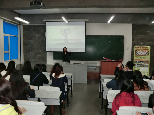 11月27日下午的宣讲会由中国对外友好合作服务中心招生主任王丹妮主讲,通过精彩的PPT播放,给在场的同学做了生动的赴美带薪实习项目介绍。同学们对赴美带薪实习项目表现出极大的兴趣,说明会结束后,很多同学留下来询问相关信息。