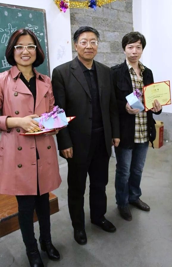 图7 田中雨和沈胜哲两位老师与三等奖获得者合影