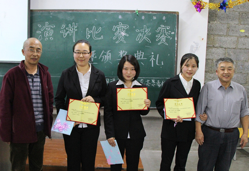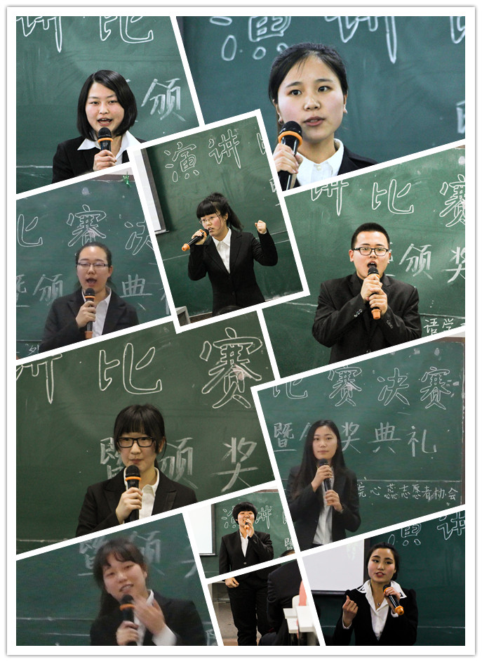 本次英语演讲比赛旨在给外国语学院学生创造一个激励英语学习、展示综合能力、培养优秀人才的平台,从而进一步增强学习兴趣、提高口语表达能力。外国语学院心蕊志愿者协会的成员们从2014年12月底开始筹备,2015年3月初拉开比赛序幕,来自外国语学院2012、2013、2014级英语专业的50名同学,经过初赛、复赛的激烈角逐,最后有10名同学进入决赛。英语教研室周晓莉、许可新两位老师对进入决赛的10名同学进行了审稿、语音语调等方面的专业指导,力求让每位选手发挥最大优势。决赛现场由翟珊珊、郭禹佳、丁磊、王雪吟、王桂梅、武慧六位英语教师担任评委,选手们通过主题演讲和现场问答两个环节,决出一等奖、二等奖、三等奖以及优秀奖四个奖项。