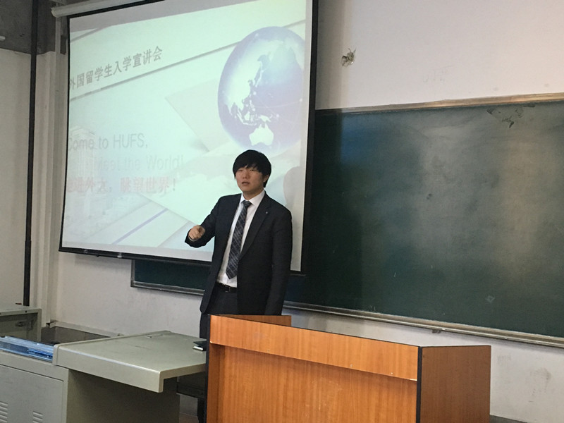 3月25日下午2点,教学楼230教室里近百名外国语学院朝鲜语专业学生聆听了一场别开生面的赴韩留学说明会,韩国外国语大学语学研究所中国地域负责人张天罡老师专程从韩国赶赴我院进行宣讲。