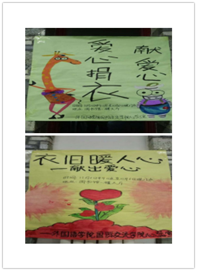 在我院志愿者的大力宣传和全校广大师生的支持和积极参与下,外国语学院此次“衣旧暖人心”爱心捐衣活动于6日晚17:00顺利落下帷幕。短短几天时间,收到同学们的爱心捐赠共百余件,其中还有部分是八,九成新的冬衣。这次活动,不仅帮助了困难群体为社会奉献了爱心,更让闲置的衣物能够继续发挥价值,利于环保,同时也践行了勤俭节约的美德。