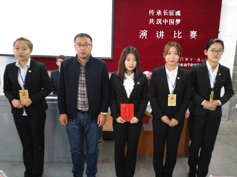 为纪念长征胜利80周年,中国共产党成立95周年,引导广大团员青年继承和发扬艰苦奋斗、顽强拼搏的长征精神,敢于面对各种挑战和考验,坚定在中国特色社会主义道路上实现“中国梦”的理想信念。2016年11月23日中午在309教室,外国语学院团委举办了“传承长征魂,共筑中国梦”演讲比赛决赛。