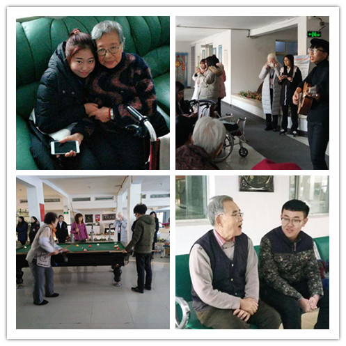 敬老活动将要结束,志愿者们和老人们一起拍照留念。有位老爷爷不停地说:“谢谢你们啊!学习那么忙还来看我们。”虽然他们都是在重复着这句话,但志愿者们却是越听越窝心,心蕊志愿者可以感受到他们是多么需要我们的关心!在这里每一位老人都有一个故事,感动也不停地继续着,我们能做的是听他们诉说,然后安慰他们,虽然能为他们做的只是一个下午的陪伴,但至少可以给他们的生活增添一丝温暖。有一位老奶奶伸出手和我们握手,一双瘦小而颤抖的手,以前为孩子们撑起一片天,而现在需要的是孩子们的温暖和呵护,我们能看得到老人们的内心其实也是很孤独的。他们希望有人能来陪他们聊聊天,陪他们打打球,听她们唱歌。有时,他们需要的仅仅就是一首歌,一首唤起他们美好回忆的歌,一幅重聚他们活力的精神篇章。就这样简单,就这样微小,便足以让他们得到前所未有的满足与充实,享受严冬里存在于他们每一个角落的温暖和惬意!