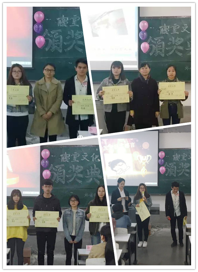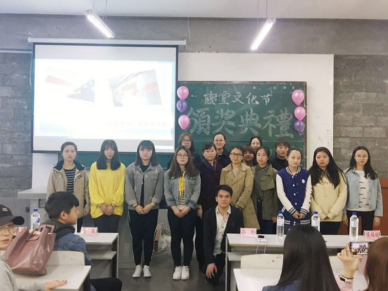 2017年4月13日11:30,我院于教学楼309教室举行了2016级“小寝室 大家庭”寝室文化节活动的颁奖典礼,外国语学院团委书记孙野、辅导员老师李珊、学院各组织主席团成员以及学生会各部门出席了此次典礼。