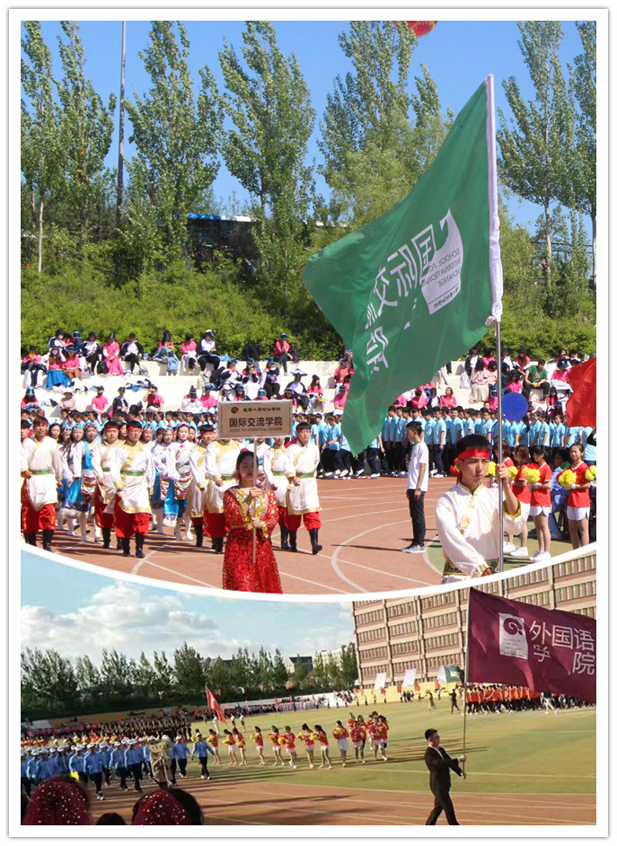 早上8:30,学院足球场礼炮鸣响、彩球飘扬,我校学生以学院为单位,排着整齐的方阵队伍进入操场接受校领导的检阅。外国语学院和国际交流学院的两支代表队英姿飒爽、步伐矫健,以“文明、和谐、诚信、友善”为箴言,向全校师生展现我院积极向上、开拓进取的精神风貌。