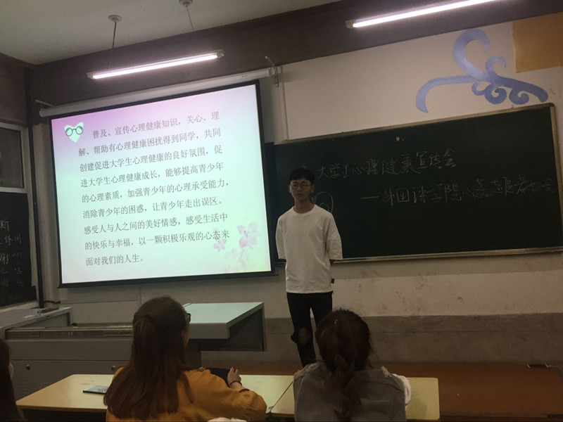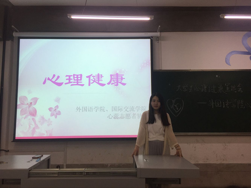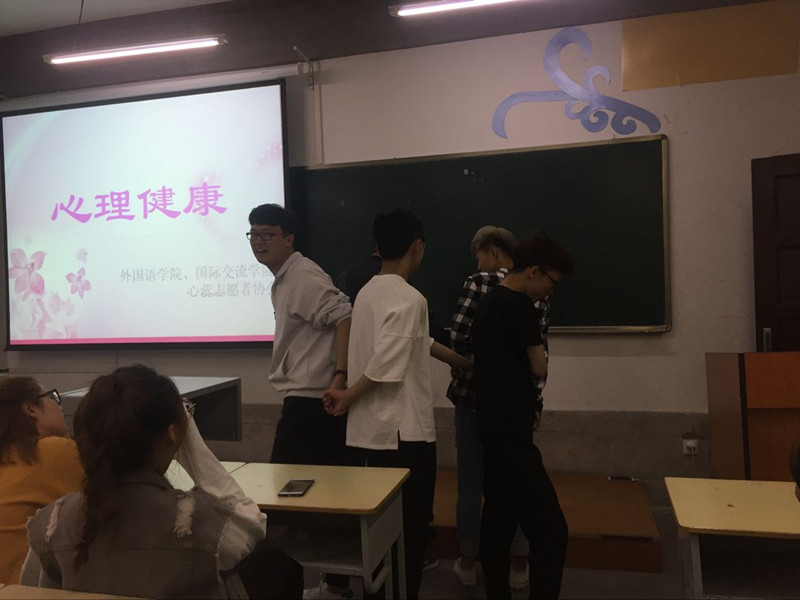 为了进一步加强我校大学生心理健康教育,共同创建促进大学生心理健康的良好氛围, 2017年6月7日晚18时,外国语学院心蕊志愿者协会举办的“呵护心灵,健康成长”活动,在328教室举行。活动以普及、宣传心理健康知识,关心、理解、帮助有心理健康困扰同学为内容,通过游戏、倾诉、观影等方式,感受人与人之间的美好情感,感受生活中的快乐与幸福,从而以一颗积极乐观的心态面对人生。
