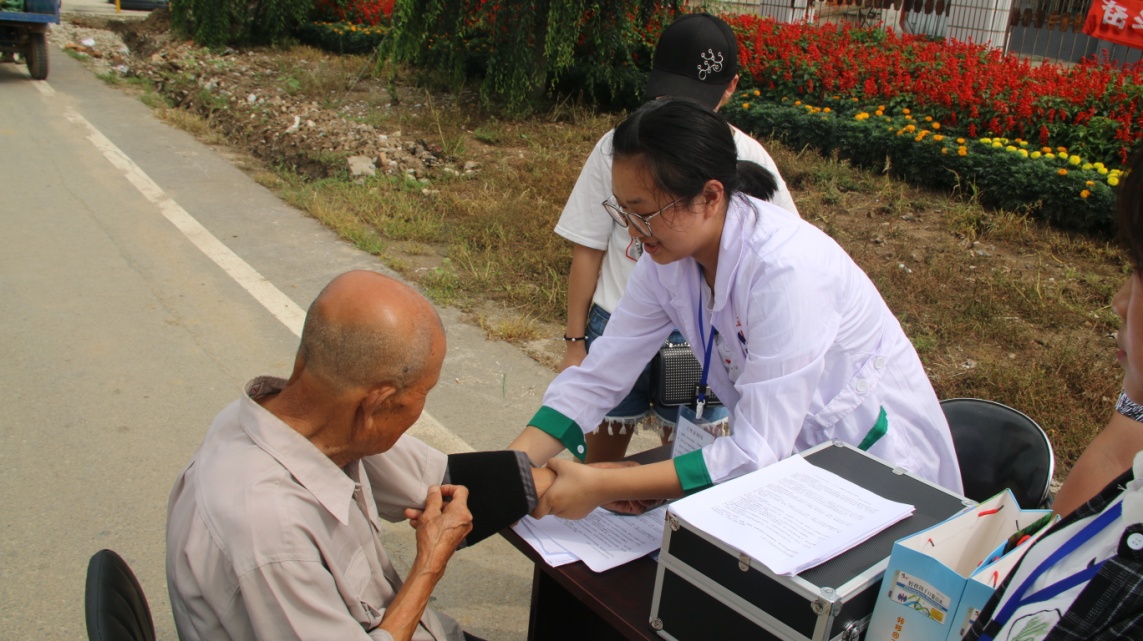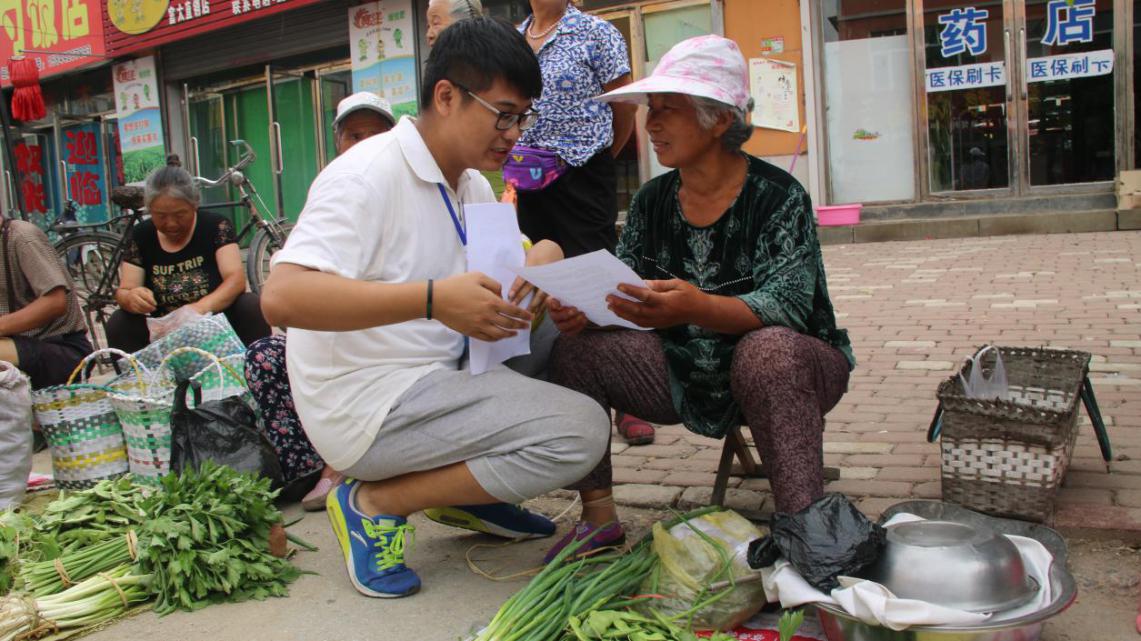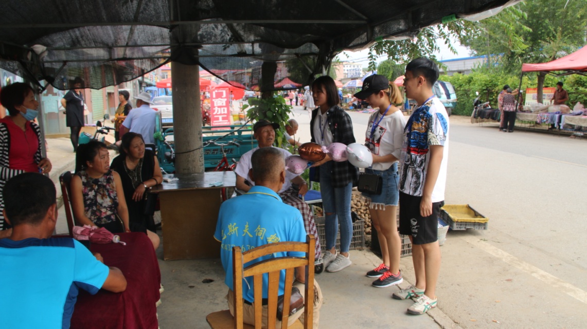 上午的血压测量和宣传工作十分顺利,队员们进行了短暂的午休后,来到紧邻粮库的集市上进行走访和宣传,整个下午的时间通过面对面的交流、详细的讲解,把疾病预防和卫生知识宣传给更多的人。