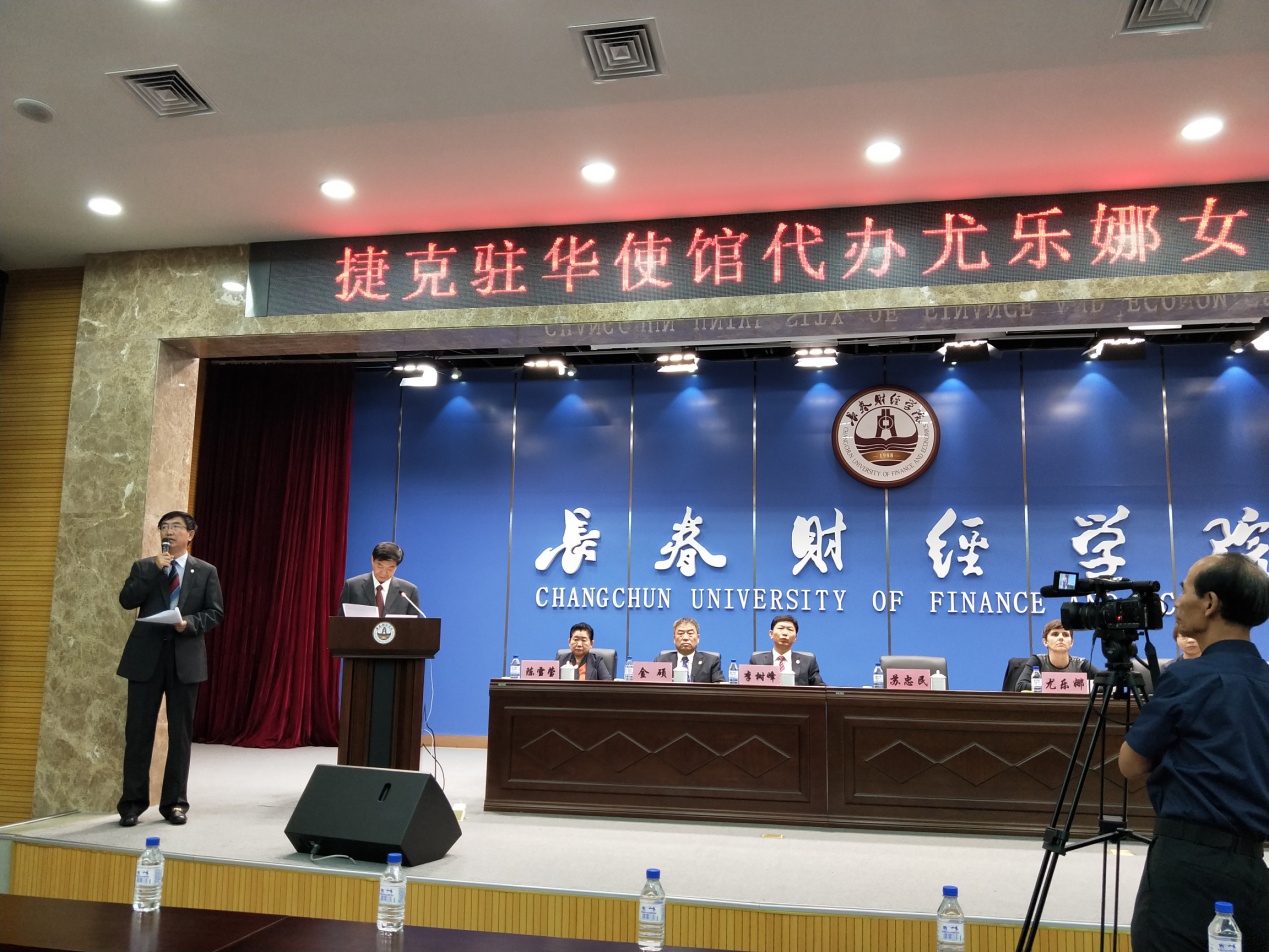 96日上午九时整,我院副院长王丹同志、院办负责人刘名同志受邀参加了在长春财经学院图书馆召开的捷克驻华临时代办尤乐那女士专题报告会。