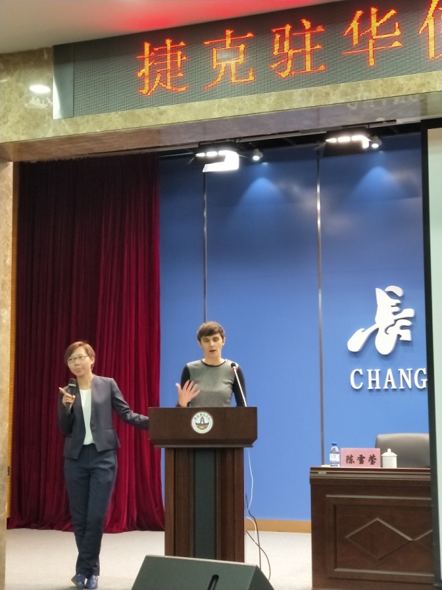 报告会上,尤乐那女士积极评价近三年来,特别是20163月习主席对捷克进行历史性国事访问以来,两国在政治、经贸、教育等领域交流合作的迅猛发展,并在中国“一带一路”政策下中捷两国已经实现了通航、机械制造、教育等17个不同领域的合作。尤乐娜女士进一步指出“16+1”合作机制为中捷关系进一步提供了更广阔的时间平台,并表示在今年七月份布拉格隆重举行的中国投资论坛的成功举办正是“16+1”合作机制下的成果。会议期间,尤乐娜女士向参会的22所高校代表们用PPT的形式展现了捷克人文、经济、地理、气候等社会全貌,积极鼓励并欢迎中国人民到捷克参与投资,以增加中捷合作交流机会。