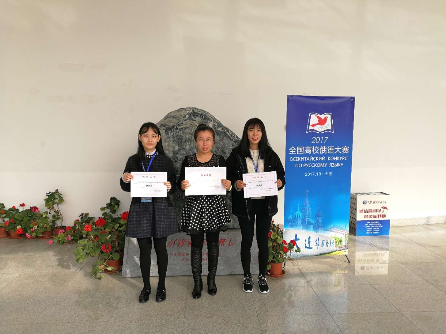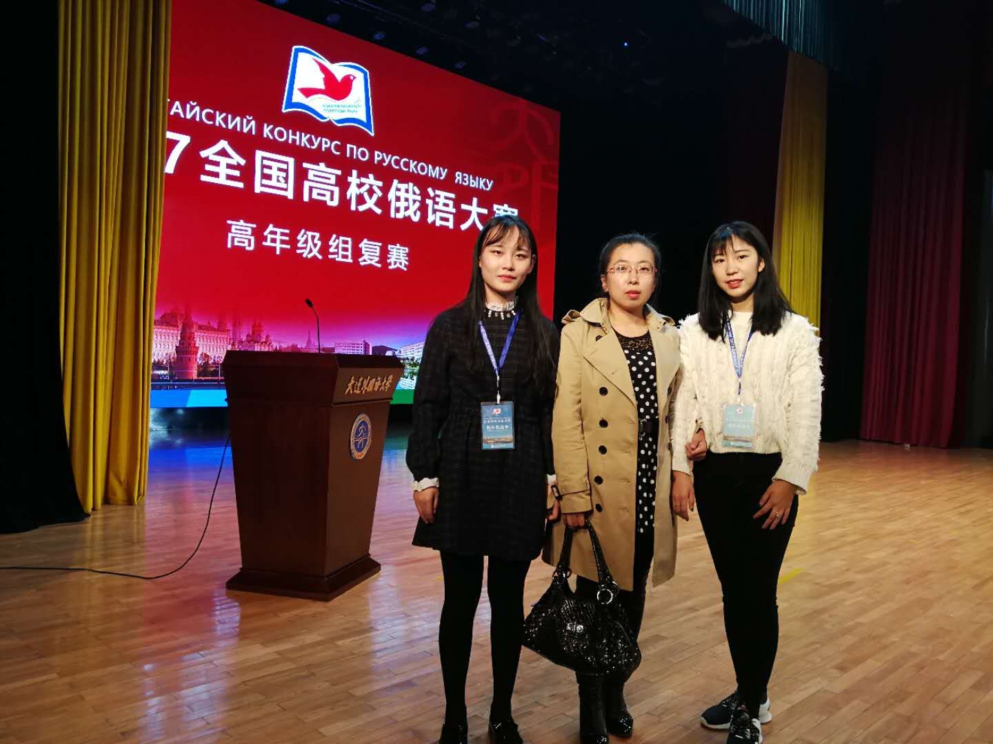 10月15日,“2017年全国高校俄语大赛”拉开帷幕,我校俄语专业参赛团队由赵静老师带队,152401班刘琳、1620401班鲁彦辰两名同学为参赛选手,与来自全国151所高校的400余名选手在为期两天的赛程中展开了初赛、复赛和决赛的激烈角逐。