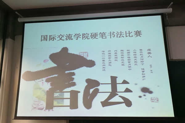 我院各教研室积极筹备赛事,按照赛制先期进行了如“国际交流学院第一届汉字硬笔书法大赛”、“英语专业书法选拔赛”等多形式的书法组选手遴选工作。书法组总决赛于2017年11月2日中午11:35分在教学楼236室举行,参加此次比赛的是15级、16级、17级汉语国际教育专业及英日朝俄四个专业参赛选手。