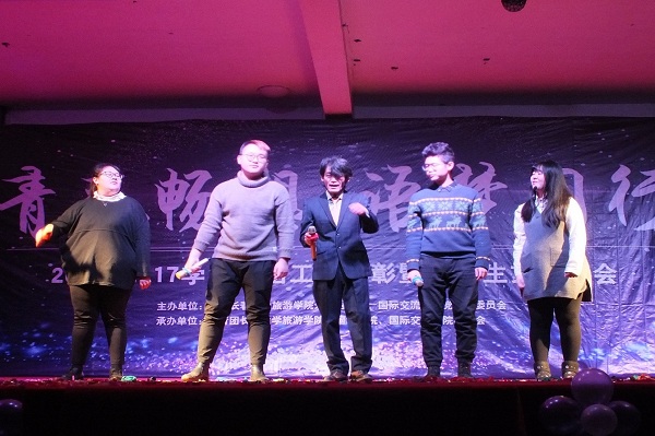 日籍教师藤原务与17级日语班的歌曲《老男孩》、俄籍教师雅娜与17级俄语班的情景剧《青葱岁月》掀起了晚会的小高潮。