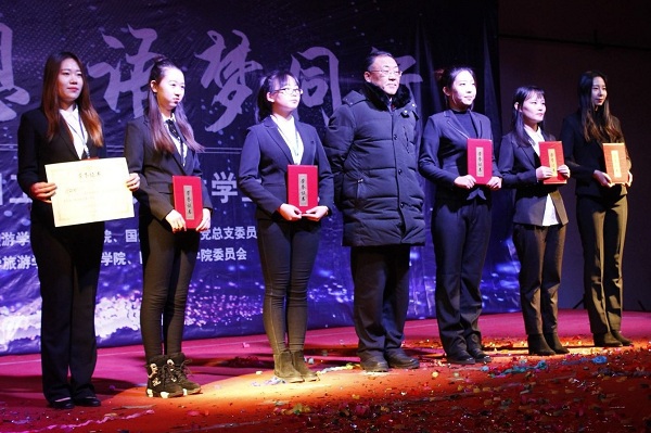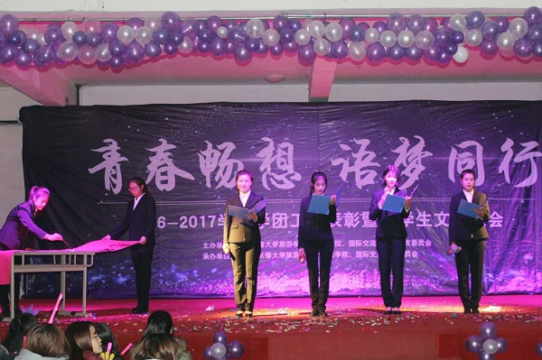 2017年12月14日晚,中共长春大学旅游学院外国语学院、国际交流学院党总支委员会主办,共青团长春大学旅游学院外国语学院、国际交流学院委员会承办的“青春畅想 语梦同行”2016-2017学年学团工作表彰暨大学生文艺晚会在大学生活动中心顺利举行,学校党委副书记、副校长马维东,校长助理、学生工作处(部)处长高阳,校团委书记贾烊,外国语学院、国际交流学院院长黄江教授,各学院党总支书记、团委书记,我院副院长王丹、办公室、教研室和全体辅导员老师出席了晚会。
