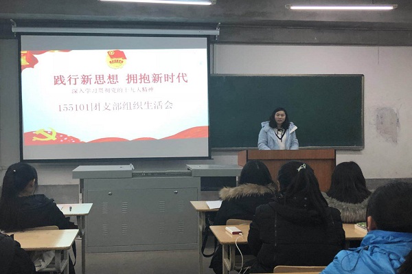 学院团委书记孙野老师带头学习、深入宣讲,在十九大主题征文、演讲比赛、观看十九大开幕式、主题团日活动、观看《不忘初心 继续前进》专题片、座谈交流会等多种学习形式的基础上,参加了155101、1650101、1720101、1720103等多个团支部的组织生活会,带领团员青年学习《中共中央关于认真学习宣传贯彻党的十九大精神的决定》、新华社长篇通讯 《习近平: 新时代的领路人》、人民日报关于学习贯彻党的十九大精神系列评论员文章等内容,引导团员切实增强不忘初心跟党走的自觉性、坚定性, 更加紧密地团结在以习近平同志为核心的党中央周围。