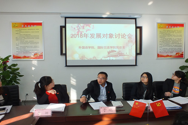 为深入贯彻落实党的十九大精神,扩大党内民主,保障党员权利,改进和规范发展党员工作,保证发展党员质量,我院学生党支部于2018年1月2日上午9:00在201党团活动室召开2018年拟发展对象讨论会。我院学生党支部书记李姗主持,学院党总支书记于刚、组织员孙野、宣传委员王旭及学生党支部的所有党员参加了讨论大会。