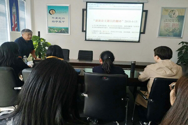 为进一步提高英语专业本科生毕业论文的质量,增强英语教学的学术氛围,2018年4月16日下午,外国语学院英语教研室在综合实训楼201会议室举办了毕业论文题目汉译英翻译策略学术讲座。出席本次讲座的有资深翻译家田中雨教授、外国语学院英语教研室全体老师、15级英语专业在校生。