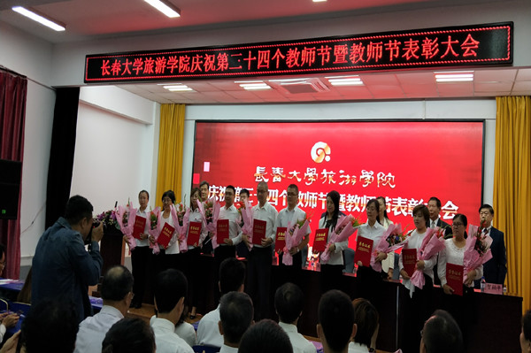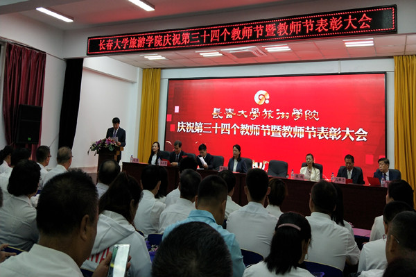 上午9:00,我校举办了庆祝第三十四个教师节暨教师节表彰大会,会议由校党委书记张洪昭主持,我校副董事长郑晓明及校领导们均出席了此次会议。校长刘耀辉宣读了《关于公布2018年优秀教师、优秀辅导员评选结果的决定》,包括我院赵静老师在内的10名教师荣获“优秀教师”荣誉称号,随后校领导为受到表彰的教师现场颁发了证书并送上了祝福的鲜花。