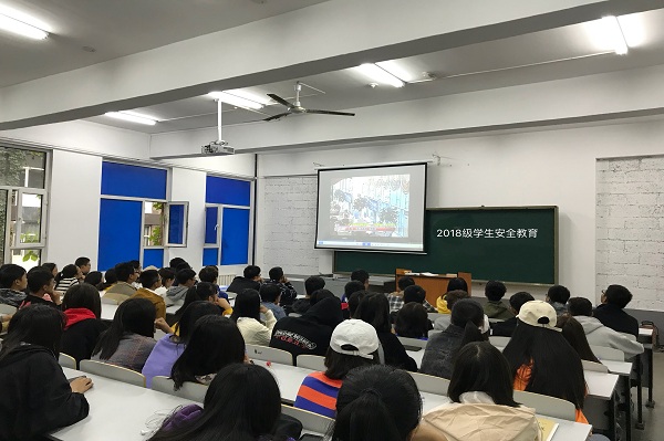 为提升大学生对安全的重视,进一步构建和谐美好校园,增强同学们的安全意识和自我防护能力,同时做好“中秋”、“国庆”两节的安全教育。9月21日上午,孙野、于丰硕两位辅导员老师分别在教学楼215、309教室为2018级265名学生开展了安全教育。
