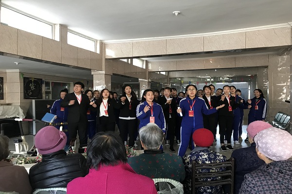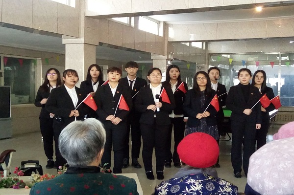 为大力弘扬敬老爱老的传统美德和爱国奋斗精神,值此改革开放四十周年之际,外国语学院、国际交流学院学生党支部、青马学员与团委学生干部组成敬老服务队,在孙野、李姗、王旭三位老师的带领下于2018年11月17日前往长春市晚晴疗养院开展敬老活动,通过服务老人和文艺表演的形式,为老人们带去心灵和精神上的慰藉,让他们感受青年学生的朝气和社会的温暖。