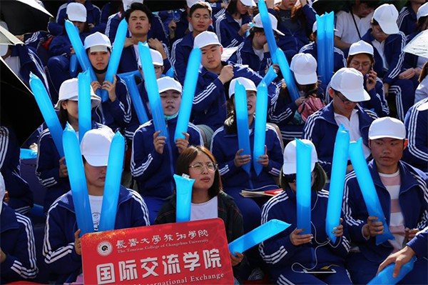 为弘扬奥林匹克精神,传承中华文明,展现当代大学生风采,激发大学生积极参加体育锻炼,我校于2019年5月24日举办第十四届田径运动会,并取得圆满成功。在这场运动盛会中,外国语学院、国际交流学院的同学们团结奋进、勇于拼搏,竞技项目取得重大突破,同时收获了文艺表演二等奖和精神文明风尚奖上午8:30开幕式开始,我院两支方队精神抖擞、斗志昂扬,迈着有力的步伐走向主席台,青春坚定的脸庞、美轮美奂的服装,构成了运动场上一道亮丽的入场风景线。