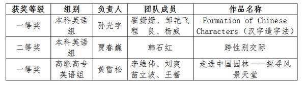 在复赛评审阶段,经比赛主办方组织评审委员会对作品进行评审,我院英语专业教师的参赛作品在全国1513件初赛作品中脱颖而出,取得优异的成绩,荣获二等奖。