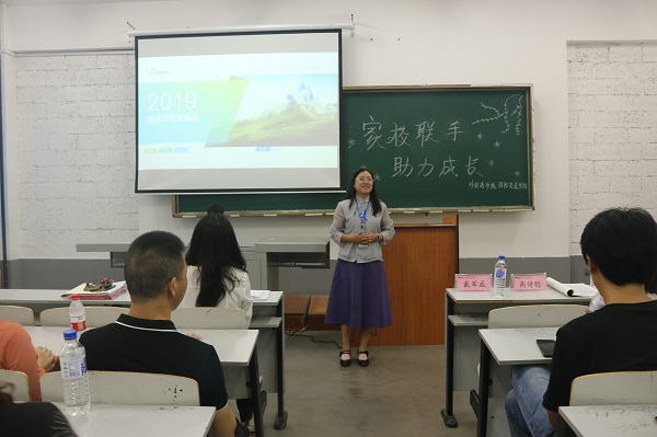 为加深2019级学生家长对学院基本情况的了解,增进学院与家长的沟通交流,实现“家校共育、助力成长”,外国语学院、国际交流学院分别于2019年9月6日、7日下午,在教学楼309教室召开了2019级新生家长见面会。党总支副书记孙野、副院长王丹、学院办公室主任刘名、新生辅导员高诗聪出席会议。会议由团委书记兼学生工作办公室主任戴军威主持。