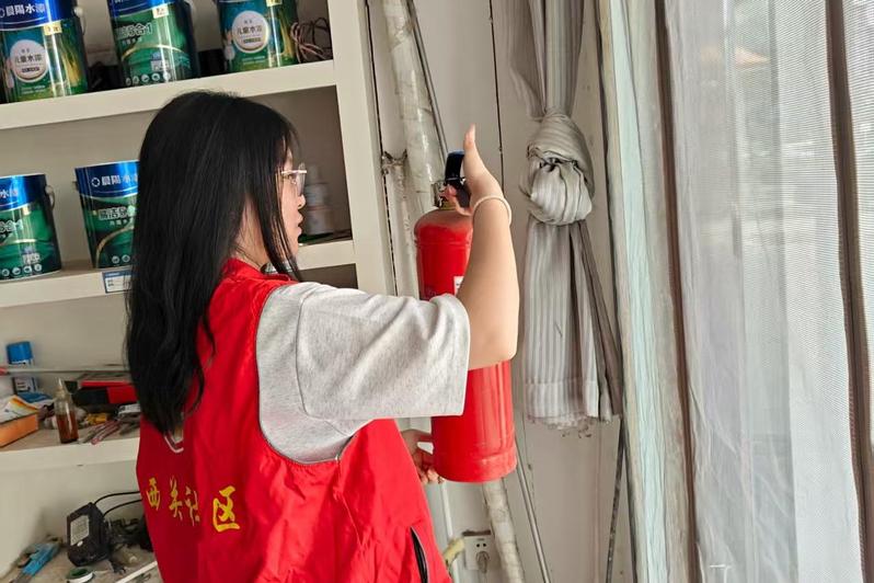 在本次暑期“返家乡”社会实践活动中,消防安全隐患排查是让张嘉颖受益匪浅的一项。踏着晨曦,2024级英语一班的张嘉颖走进山西省临汾市翼城县西关社区,开启了这场意义非凡的排查工作。指尖抚过商铺里灭火器的压力表,她凝神核对生产日期是否在有效期内;俯身查看居民楼疏散通道,确保无杂物堆积阻碍通行;仰头检查天花板上的应急灯,测试在断电时能否正常亮起。遇到店主将易燃物品堆放在火源附近,她便拿出宣传册耐心讲解隐患危害;碰到老人对老化电线不以为意,就举着案例图片慢慢说明整改必要。从街头的杂货铺到巷尾的居民楼,每一处检查都凝结着对乡亲们平安的深切牵挂。