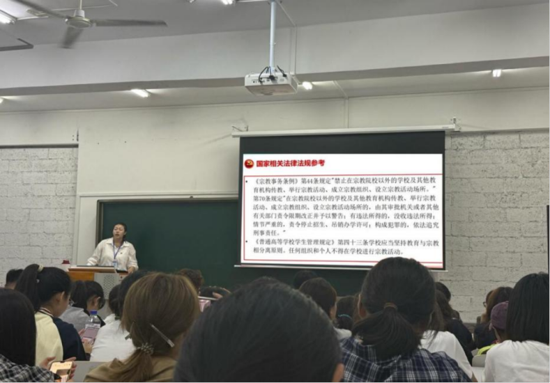 ▲2025级辅导员张启明、欧阳梦一进行党史及宗教法规讲解