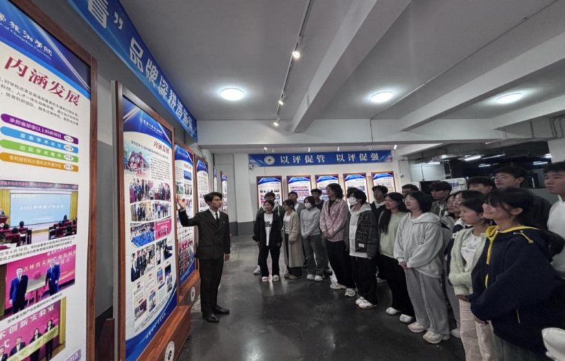 ▲学校宣讲团成员、国际交流学院2023级辛狄轩讲解学校办学成果展