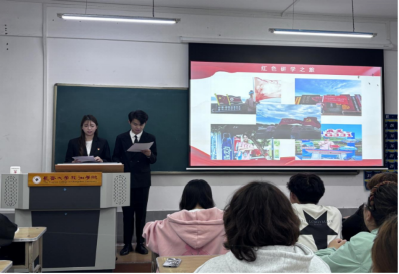 为加强思想引领、展现新青年风采,学院参与学校党校首次“红色图们江·开放向海行”研学活动的学生党员赵彦茜、学生干部辛狄轩面向新生分享研学经历,向新生讲述实地探访红色遗址、感悟边境发展的所见所感所悟,从触摸图们口岸86号、87号界碑感受国家主权,到在凉水断桥聆听抗日历史;从吴大澂收复国土纪念馆感悟爱国精神,到登上“东北亚长旅号”拓宽国际视野,鲜活的故事让新生沉浸式触摸红色历史,为新生上了一堂生动的红色思政课。在“青春心向党 奋进新征程”红色主题演讲比赛中,18名组选手激烈角逐,7名选手晋级决赛,他们以赤诚之心讲述红色故事、抒发爱国情怀。