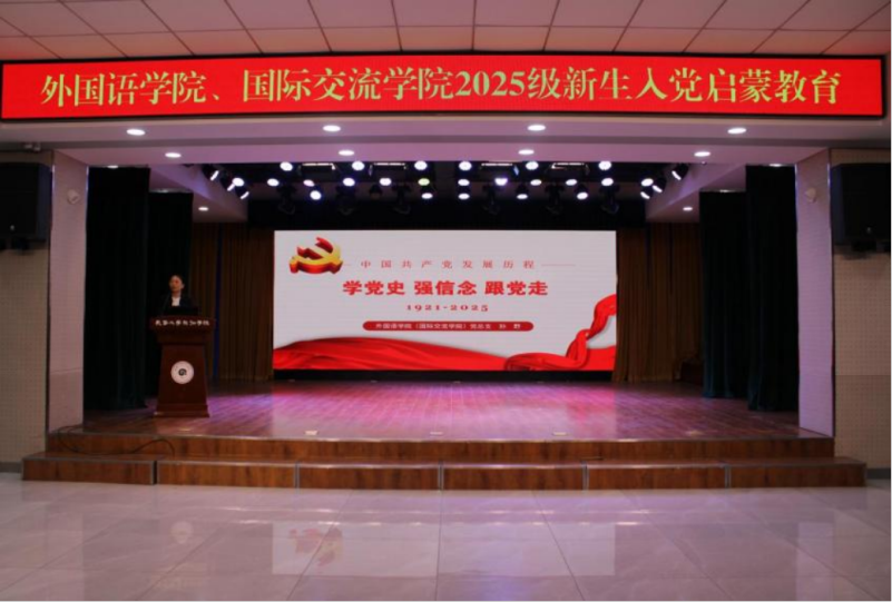 为引导2025级新生坚定理想信念、明确成长路径,结合学校“5543”党建工作体系,围绕“知党·爱党·跟党走”主题,外国语学院(国际交流学院)党总支以“辅、访、温、讲、谋”五维举措,开展2025级新生入党启蒙教育,为青年学子系好“信仰第一粒扣”。