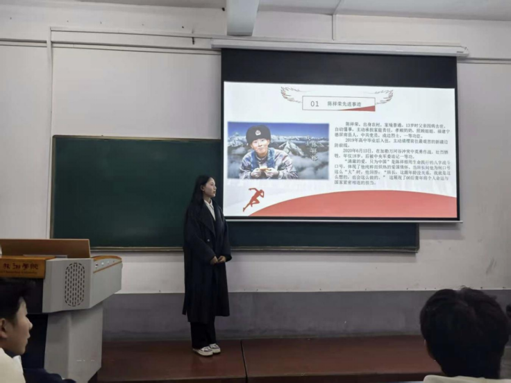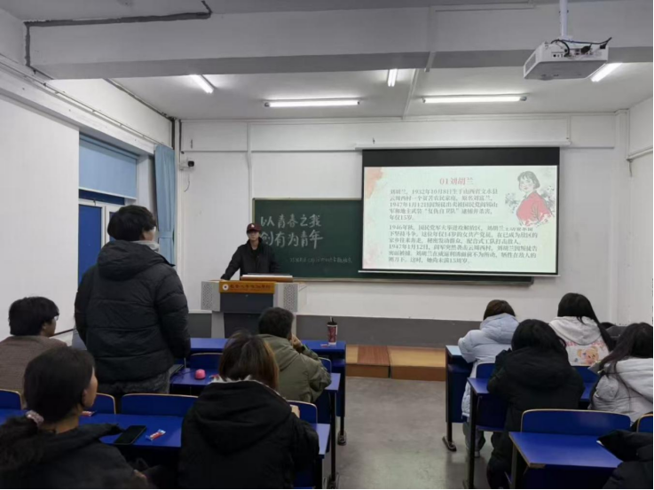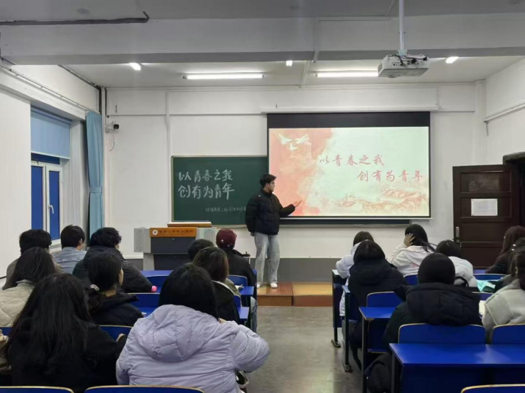 班会上,各班团支书通过视频、图文结合PPT等方式,围绕张楚桐、全红婵、孙颖莎等青年榜样典型,以富有感染力的讲解,将“以青春之我,创有为青年”的核心内涵与时代意义娓娓道来。既为整场活动定下昂扬向上的主旋律,更帮助同学们在时代坐标系中明确自身方位,深化对青春价值的思考。