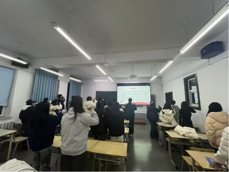 活动尾声,在各班团支书的带领下,全体学生举起右拳,庄严宣读“青春有为”倡议。铿锵誓言回荡在每间教室,同学们眼神坚定、声音洪亮,将倡议中“青春靠实干、有为在行动”的核心要义融入心声,也为此次主题活动画上了充满奋进力量的句号。