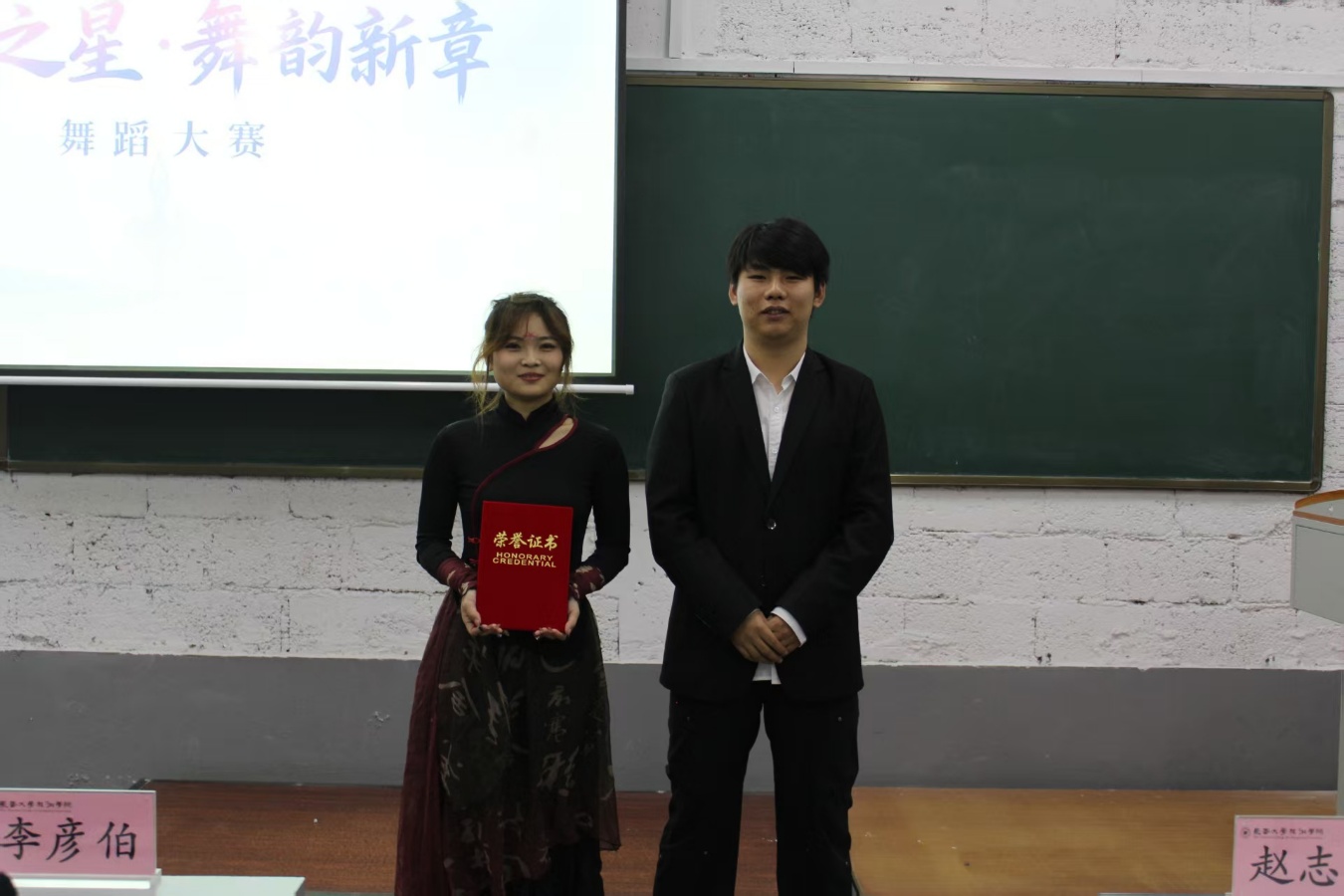▲团委学生副书记李彦伯为二等奖获得者颁奖