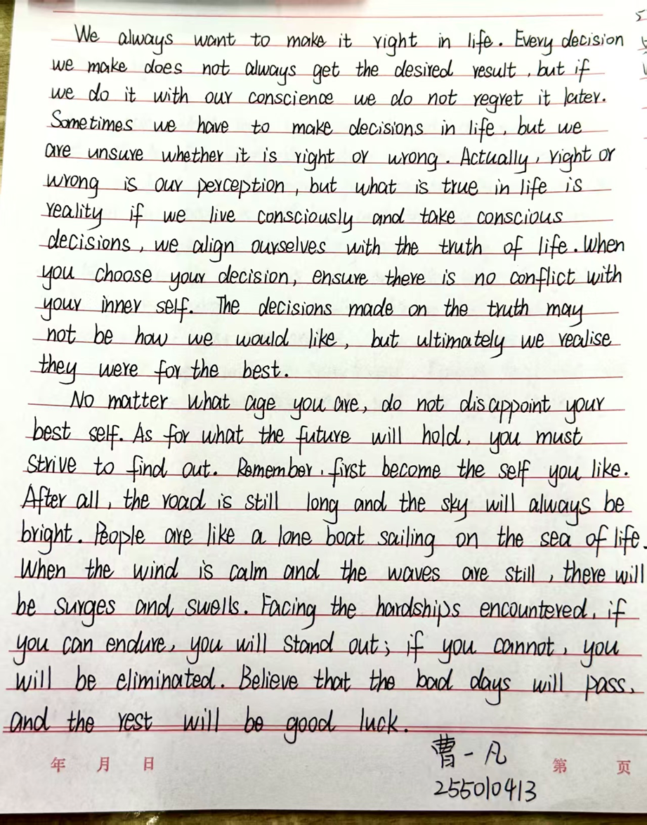 本次比赛不仅为同学们搭建了展示艺术才华的舞台,更以多语言创作打破文化壁垒,让青春创意在跨文化表达中焕发新的生机。未来,学院将以本次大赛为契机,持续深耕校园文化建设,引导学生在多元文化浸润中坚定理想信念,在艺术实践中锤炼品德修为,以青春之笔墨、昂扬之姿态书写新时代青年的责任与担当。