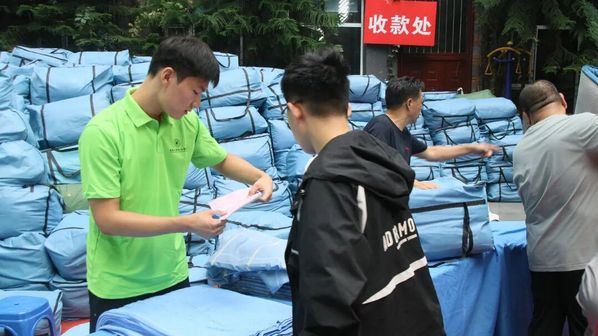 “一站式”领取服务,志愿者们分工明确,核验、发放、搬运井然有序。清晰指示牌与热情引导显著提升效率,减轻新生奔波之累,让入学体验更轻松、更省心。