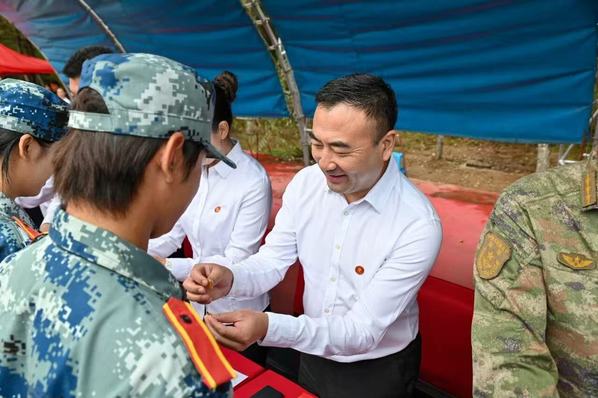 为表达对承训教官辛勤付出的崇高敬意和衷心感谢,范琳琳代表学校向65370部队赠送锦旗。教官们在军训期间不辞辛劳、耐心指导,以高度的责任感和严谨的作风陪伴同学们度过了一段难忘的成长时光。这面锦旗,不仅是对他们辛勤付出的肯定,更是军校双方深厚情谊与共同育人信念的生动体现。