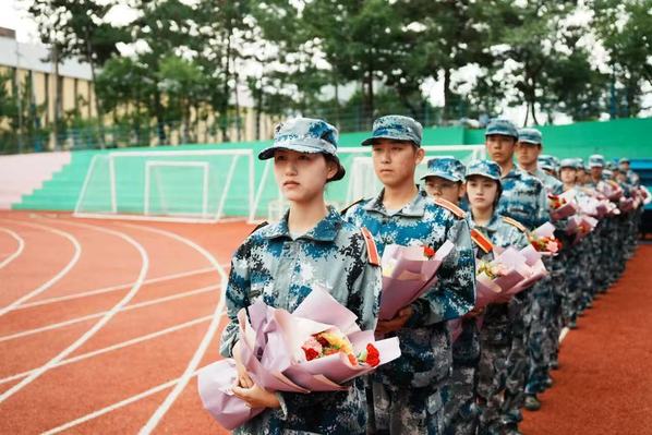 学校党委副书记高阳宣读了《关于表彰2025级学生军训先进集体和先进个人的决定》。在热烈的掌声中,校领导依次为获奖集体和个人颁发荣誉证书。一张张证书,凝聚着十多个日夜的汗水与坚守,记录着烈日下的挺拔身姿、风雨中的整齐步伐,也承载着纪律严明、团结协作、勇于拼搏的军训精神。这不仅是对优异表现的充分肯定,更是对全体新生奋发向上、追求卓越的殷切激励。随后,各连队学生代表满怀感恩向教官献上鲜花,温情场面令人动容,一路相伴的回忆与敬意在这一刻凝成永恒。