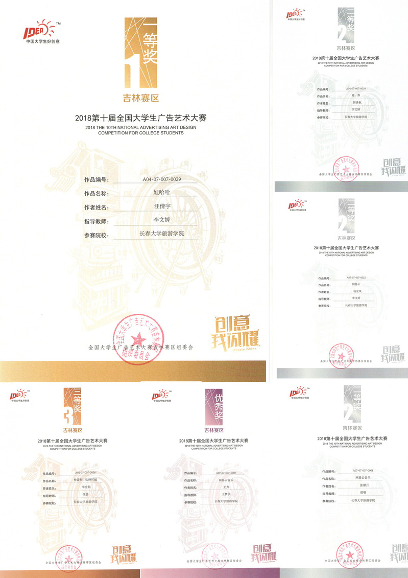 本次比赛收到了来自全国一千三百多所高校投递的数十万件参赛作品,我校学生在视觉传达教研室徐震、李东娜、王梦莎、陈荣华、李文婷、胡唯几位老师的指导下,取得了优异的成绩。中汪倩宇同学《哇哈哈》获得一等奖;韩秀秋同学《娃养》,张馨月同学《网易云音乐》,杨金凤同学《网易云》荣获二等奖;李金灿同学《杜蕾斯·吹弹可破》,吕荣同学《与青春作伴》,于欣园同学《爱华仕》,刘江铠同学《世界是你的》,王盟同学《深意联想》李江雪同学《触电藤椒》,王梦同学《哇哈哈出门篇、哇哈哈上学篇》,王力同学《年轻潮色》,杨柳同学《引领潮流》,韩秀秋同学《源远流长》,杨怡贤同学《我很轻巧》,王力同学《网易云音乐》刘子坤同学《网易云音乐》获得了优秀奖。
