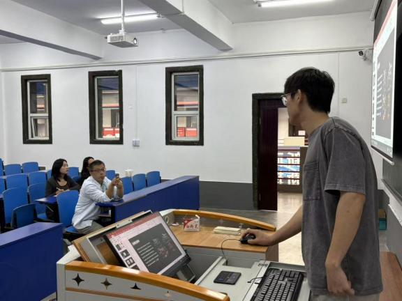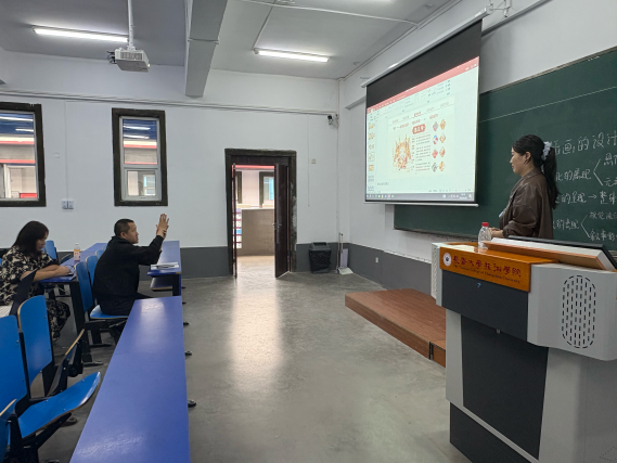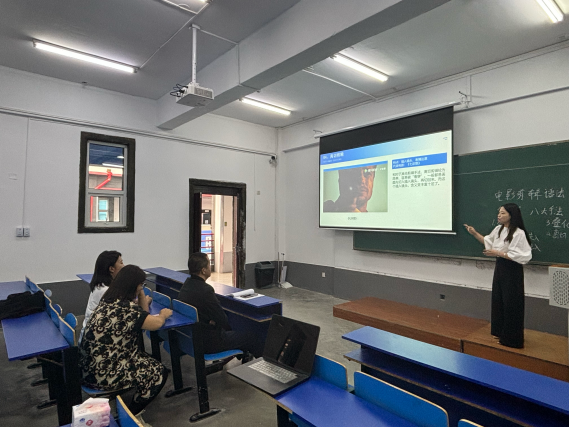 在教学展示环节,三位新教师结合自身专业方向各展所长,呈现了风格鲜明的教学课堂:鹿中一以《人工智能生成技术》为题,结合AI艺术设计场景,展现AIGC对创作的助力;何艺璇围绕《电影剪辑语法》课程内容,通过经典影视片段解析交叉剪辑、叠化等手法,引导学生理解剪辑对节奏与情感的影响;刘昕宇从《非遗插画的设计原则》切入,依托获奖案例阐述传统文化与现代设计的融合,尽显专业功底。