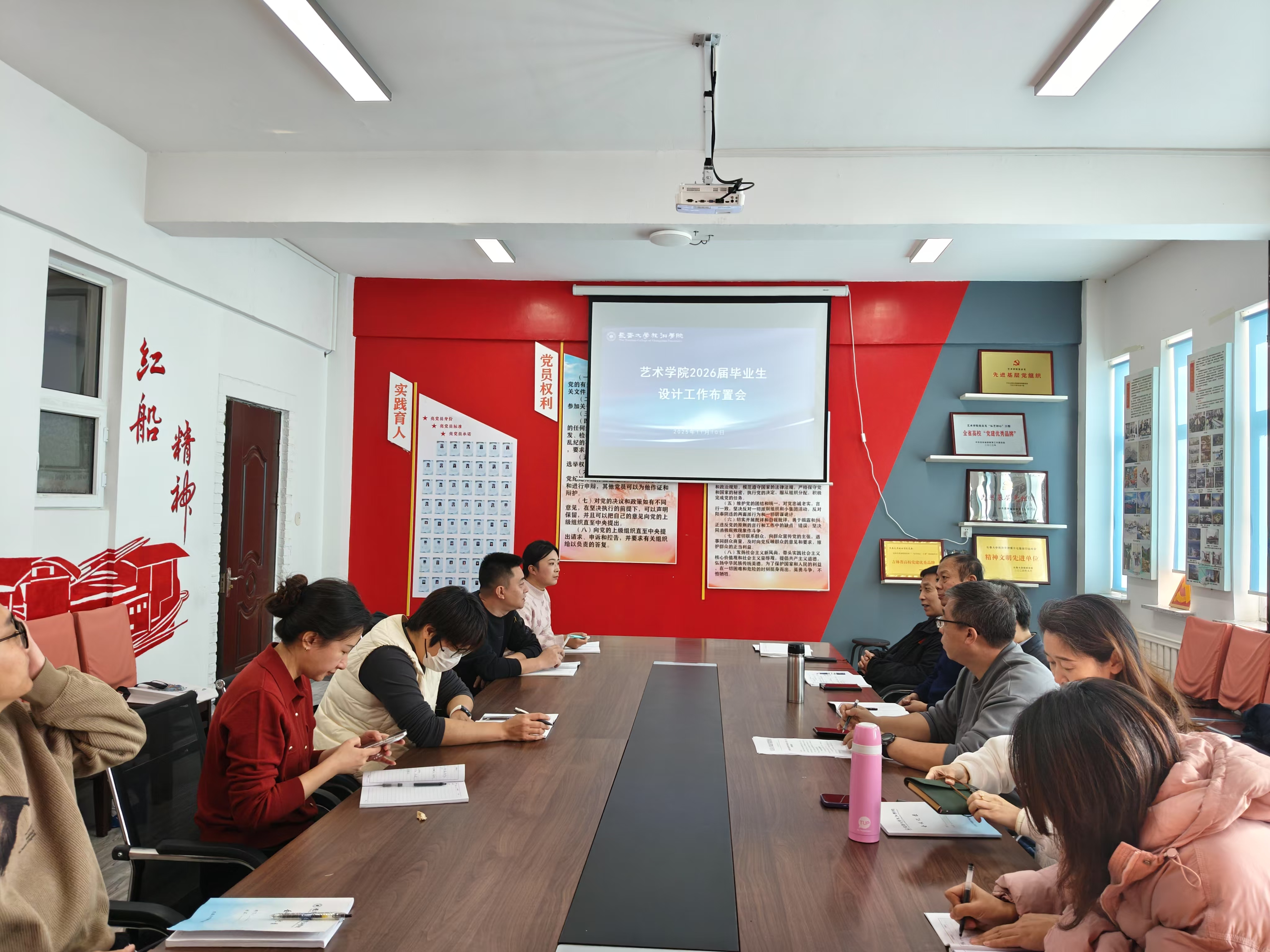 为贯彻落实教务处《关于做好2022级本科生毕业论文(设计)工作安排的通知》的工作要求,艺术学院于10月10日在综合楼402会议室组织召开2026届毕业生设计工作布置会。会议由副院长徐震主持,副院长李春郁、各专业带头人及教研室主任共同出席。