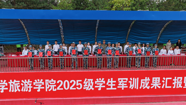 中国人民解放军65370部队全体承训教官,校长助理、各学院党政负责人、教师代表、全体新生辅导员及全体2025级新生共同见证这一重要时刻。