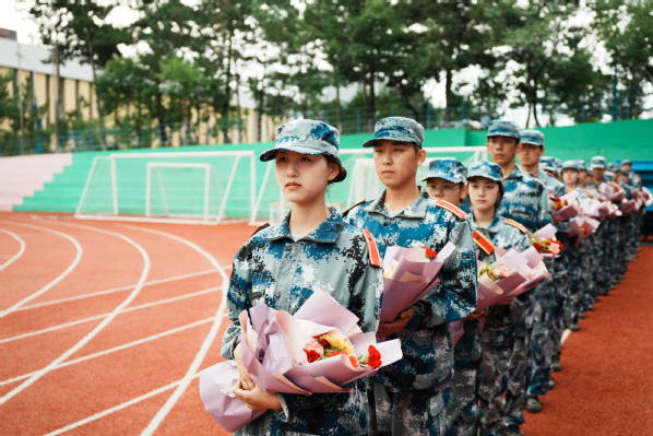 学校党委副书记高阳宣读了《关于表彰2025级学生军训先进集体和先进个人的决定》。在热烈的掌声中,校领导依次为获奖集体和个人颁发荣誉证书。一张张证书,凝聚着十多个日夜的汗水与坚守,记录着烈日下的挺拔身姿、风雨中的整齐步伐,也承载着纪律严明、团结协作、勇于拼搏的军训精神。这不仅是对优异表现的充分肯定,更是对全体新生奋发向上、追求卓越的殷切激励。随后,各连队学生代表满怀感恩向教官献上鲜花,温情场面令人动容,一路相伴的回忆与敬意在这一刻凝成永恒。