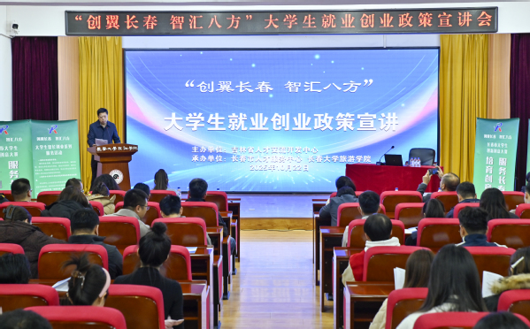 10 月 22 日下午,2025年“创翼长春 智汇八方”大学生就业创业政策宣讲会在学校筑梦报告厅举行。本次宣讲会由吉林省人才交流开发中心、长春市人才服务中心联合主办,旨在深化政校企三方联动,助力高校毕业生留长创业就业。长春市人才服务中心就业创业部部长许广华,人才服务专员骆思锐及就业创业指导教师史艳峰、臧文静出席。会议由李钰琪主持。